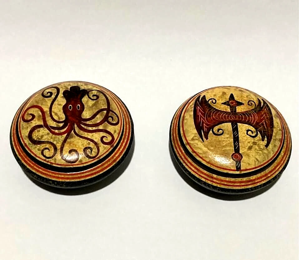 Set of 2 Ancient Greek Pyxis Boxes – Cretan Figure Pottery, Knossos Design – 6cm